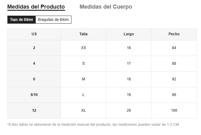 Tops de Bikini Composición: 20% Elastano, 80% poliamida