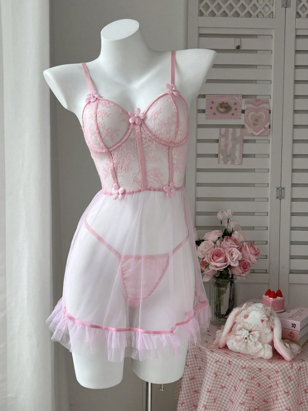 Detalles: Encaje en contraste, Transparente, rosa 3D