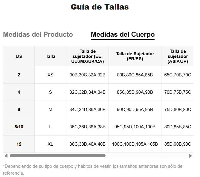 Tipo de sujetador: Largo/a