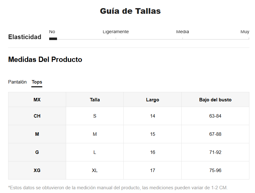 Elasticidad de la tela: Estiramiento medio
