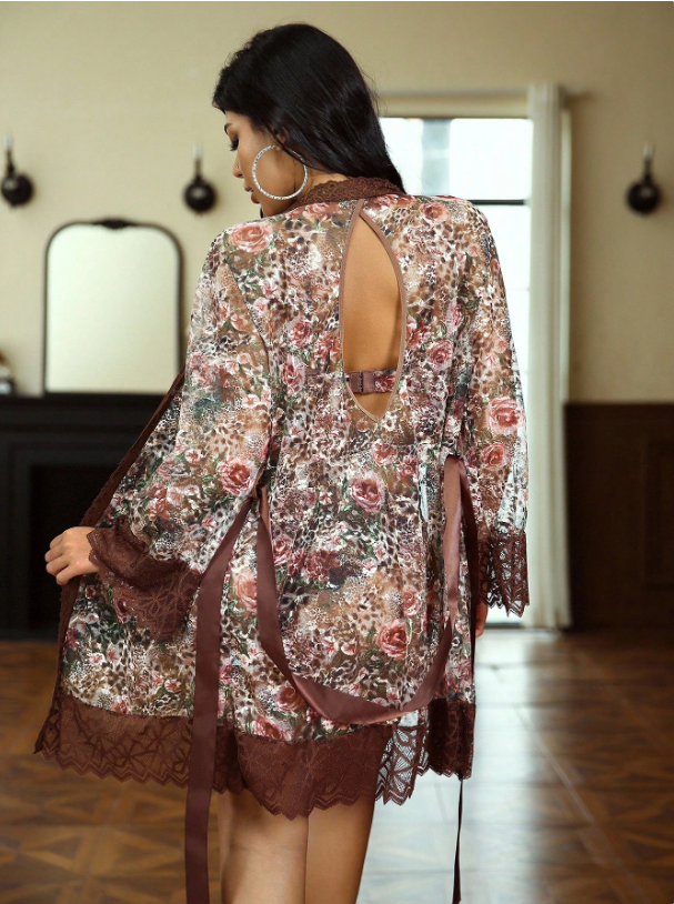 Detalles: Encaje en contraste, abertura, anudado, lazo, delantero