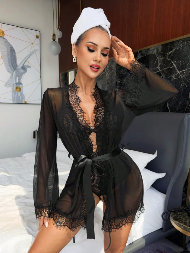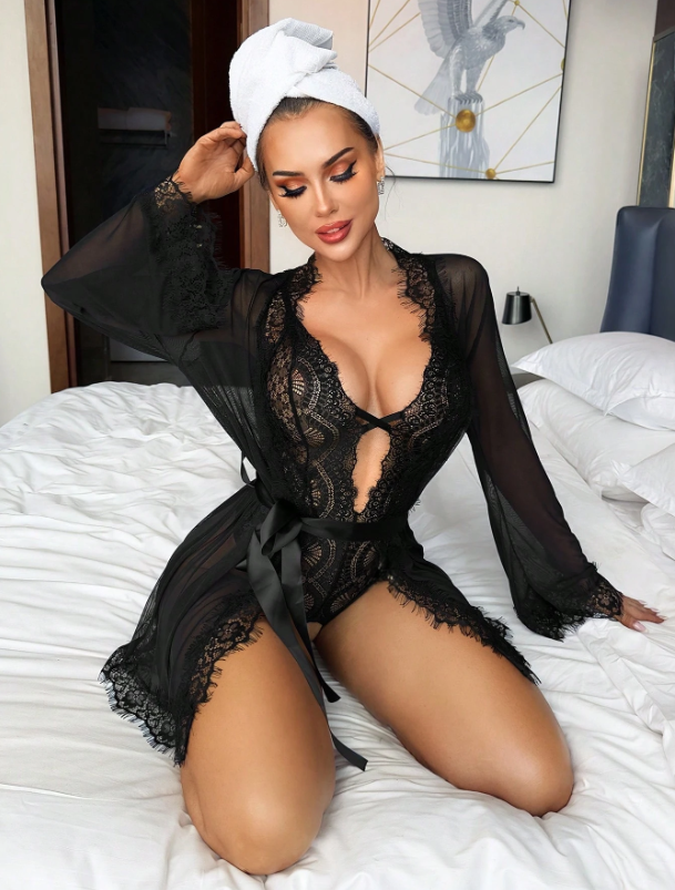 Detalles: Encaje en contraste, espalda al aire, nudo