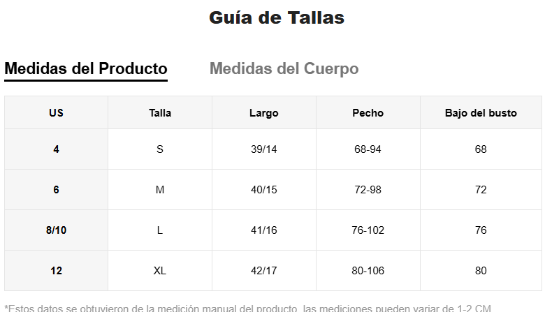 Talle: Bajo