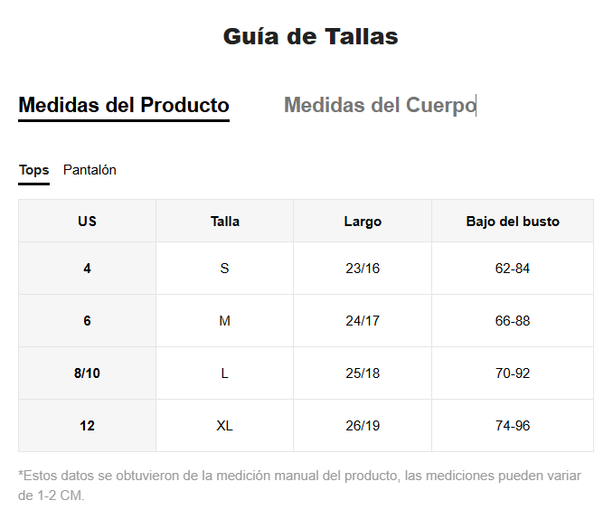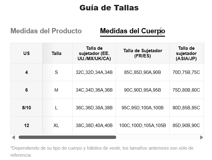 Tipo de sujetador:  Largo