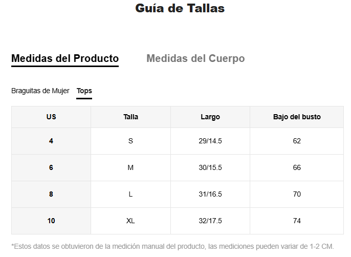 Tipo de sujetador: Top con tirantes
